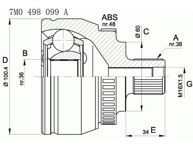 7M0498099A Các bộ phận truyền tải C.V Joint